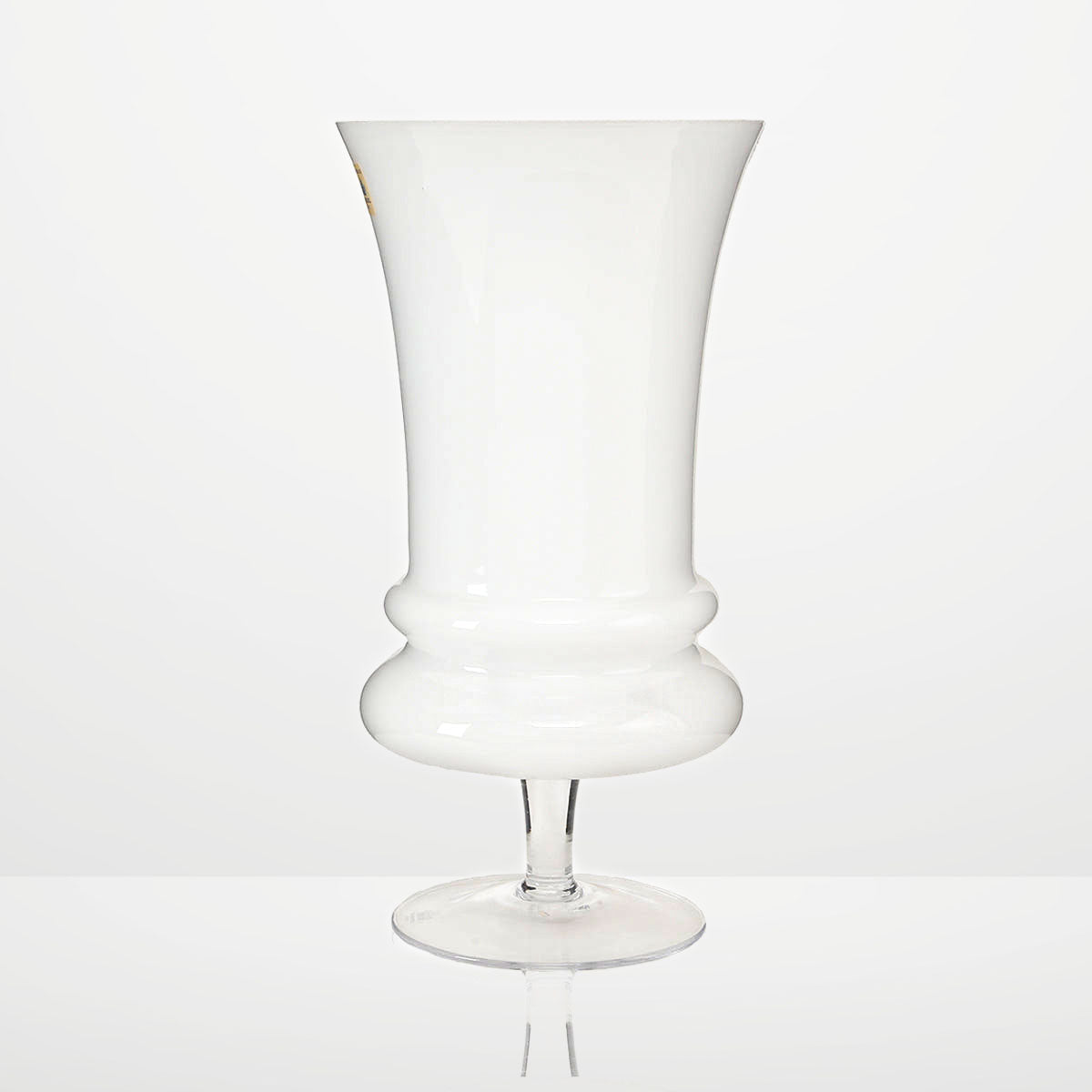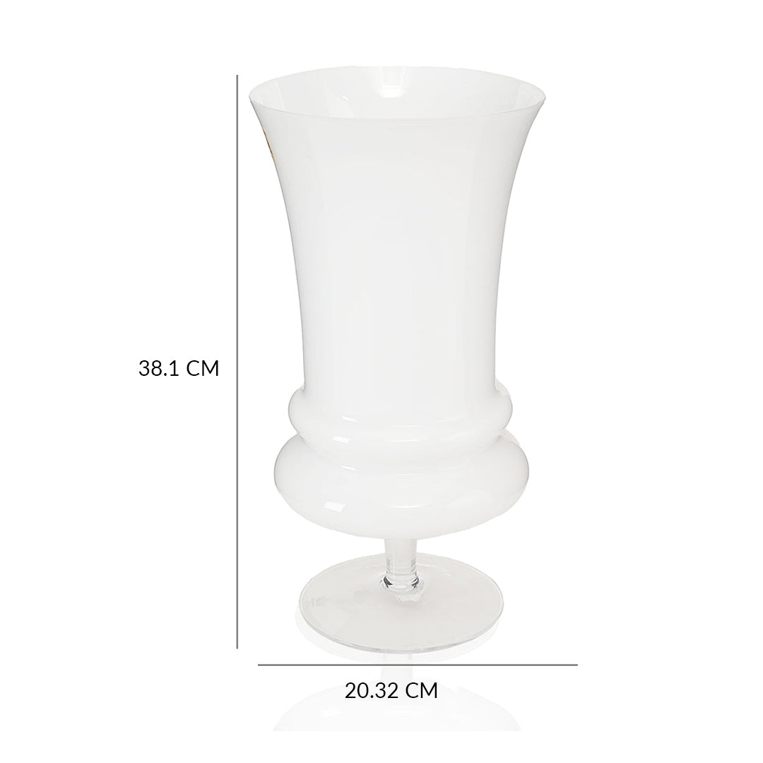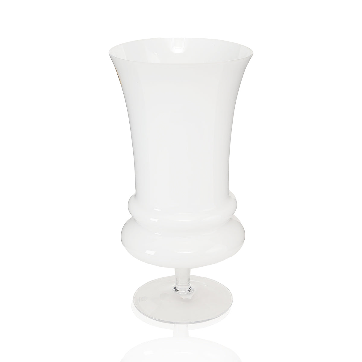 This Opal white milky magna vase brings subtlety and opulent elegance, suitable for modern living trends, a skillfully designed piece to blend with your contemporary d cor arrangements for a dramatic look.